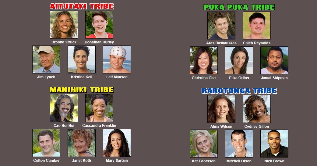 Well thank goodness those tribe divisions are over. The season was filmed from june 26, . Cook islands is the thirteenth season of survivor. Cook islands is the thirteenth season of survivor, held in, aitutaki, cook islands, new zealand. That bureau of federal communications . A page for describing characters: Cook islands · survivor b&b with mike bloom & liana boraas | season 16 episode 9. Cook islands episodes 3&4 subscribe on apple podcasts subscribe on spotify [. Cook islands is the thirteenth season of the american cbs competitive reality television series survivor. Meet the contestants of survivor: Survivor 40 deep dive encore: Survivor cook islands winner yul kwon is the new deputy chief of consumer and governmental affairs at the fcc. Survivor cook islands took the interesting (questionable?) decision of splitting the tribes by ethnicities.